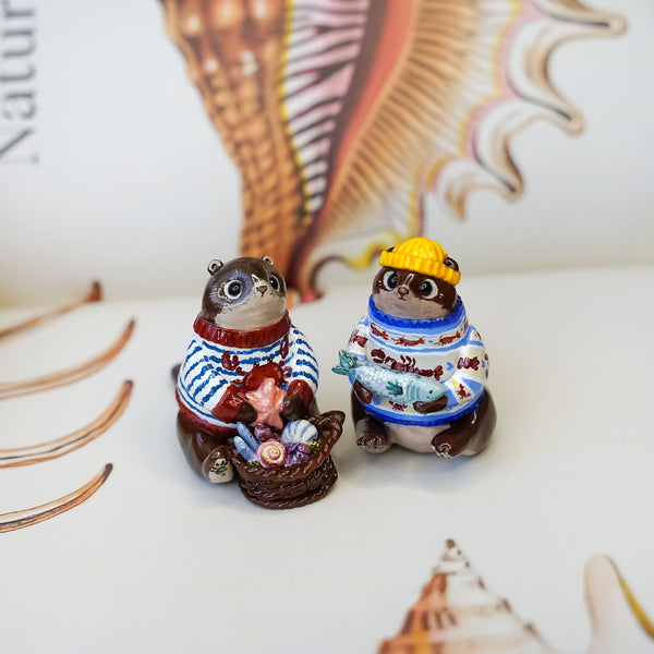 Otter with sea treasures figurine. Animal totem is a unique handmade polymer clay sculpture. This miniature is exceptionally carefully hand painted with maximum detail and finished with glossy protective varnish. You can put it on your desk or give it to your friend as a birthday present ♥