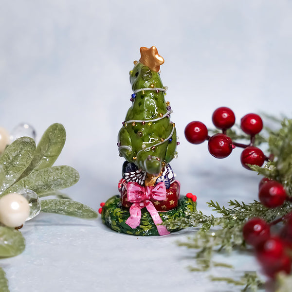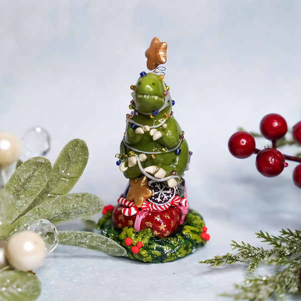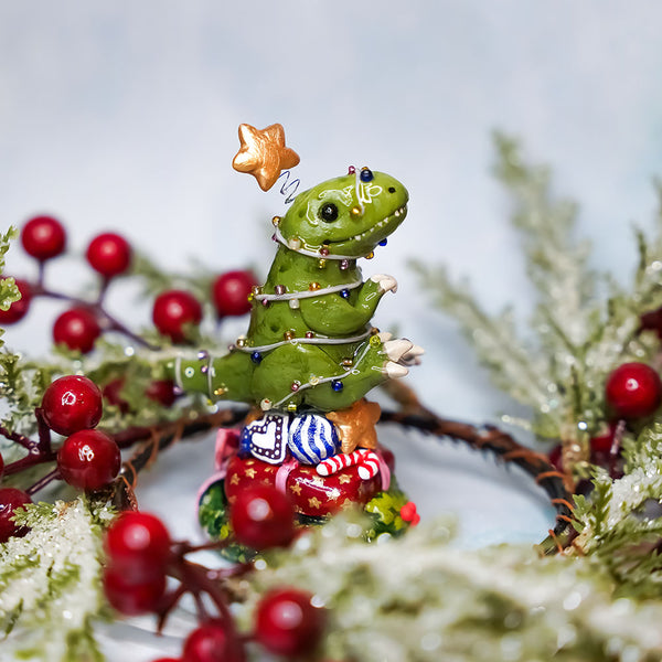 T-rex the Christmas Tree - Christmas figurine. Animal totem is a unique handmade polymer clay sculpture. This miniature is exceptionally carefully hand painted with maximum detail and finished with glossy protective varnish. You can put it on your desk or give it to your friend as a birthday present ♥