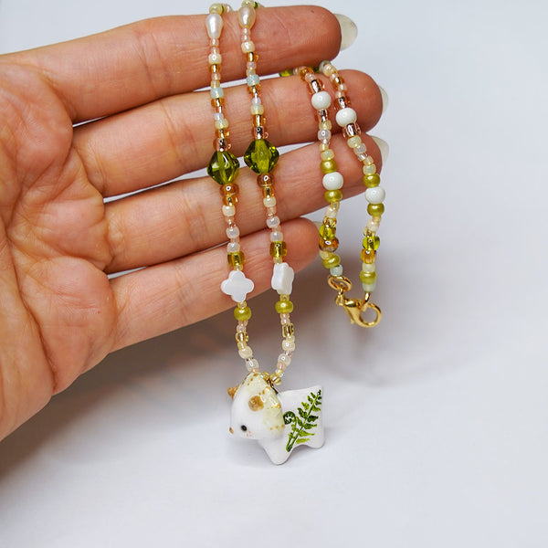 Beautiful glassy beads necklace with charms.