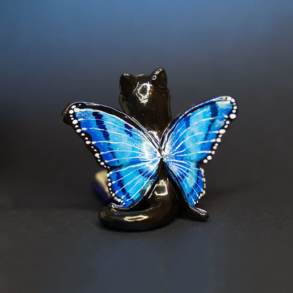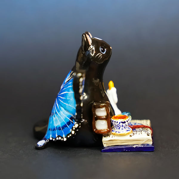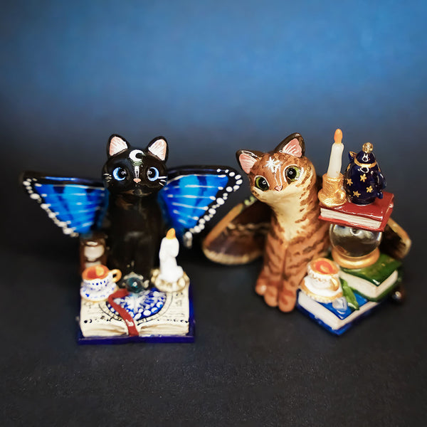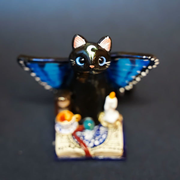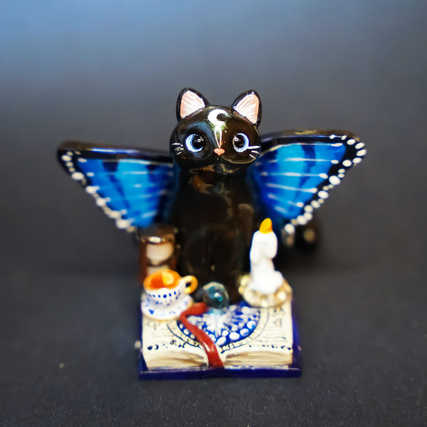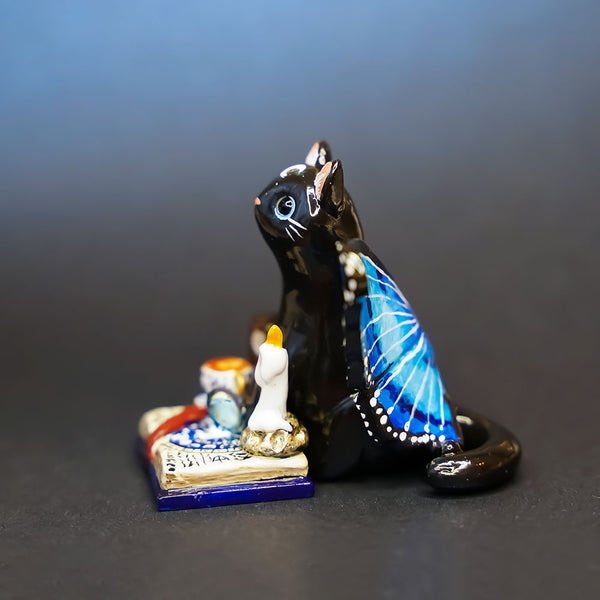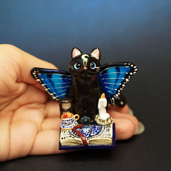 Black Cat - Moon Magic figurine. Animal totem is a unique handmade polymer clay sculpture. This miniature is exceptionally carefully hand painted with maximum detail and finished with glossy protective varnish. You can put it on your desk or give it to your friend as a birthday present ♥