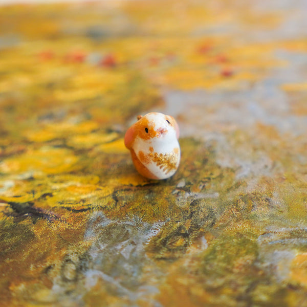 Weasel with fern is a unique handmade polymer clay pendant.
