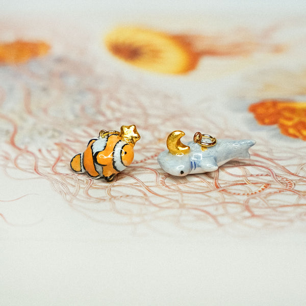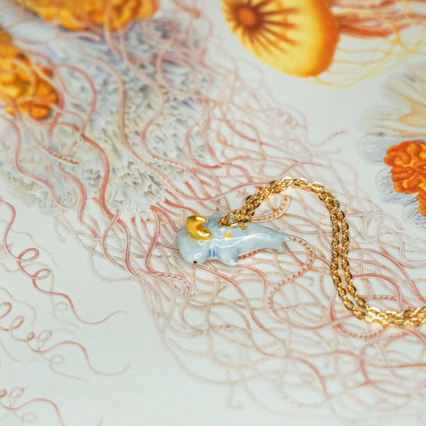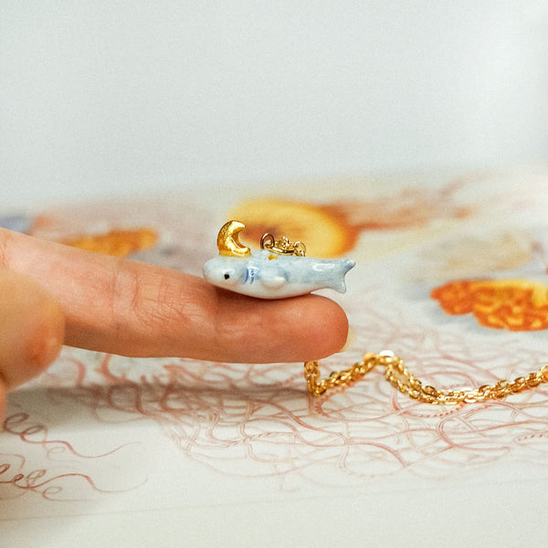 Hammerhead Shark with the Moon is a unique handmade polymer clay pendant.