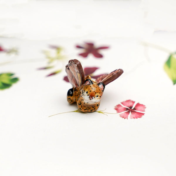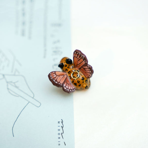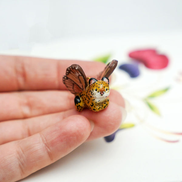 Leopard with pink butterfly wings is a unique handmade polymer clay pendant.