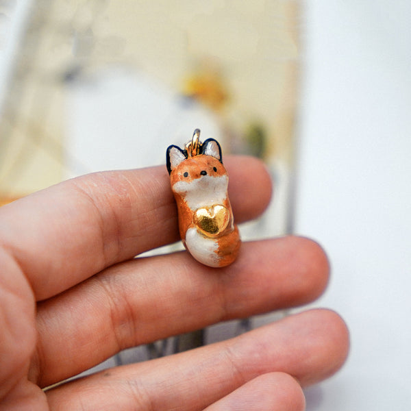 Loving fox is a unique handmade polymer clay pendant.