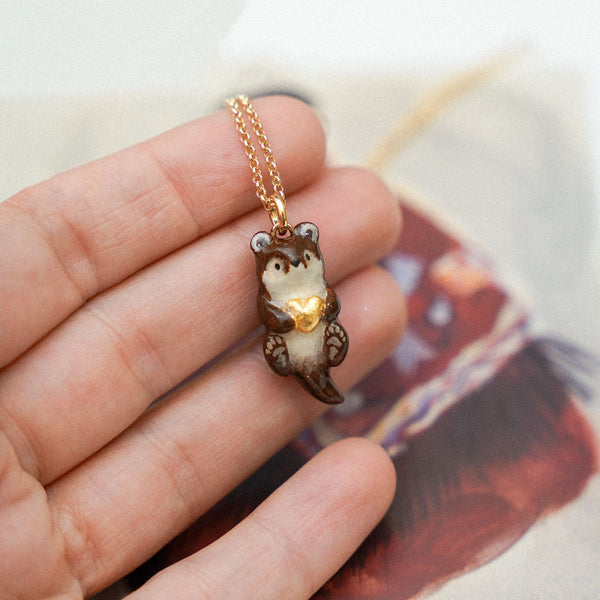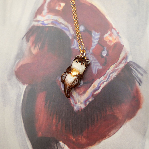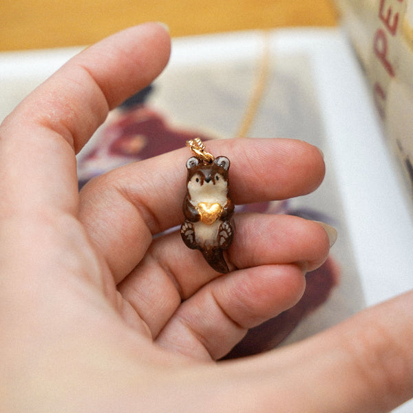Loving otter is a unique handmade polymer clay pendant.