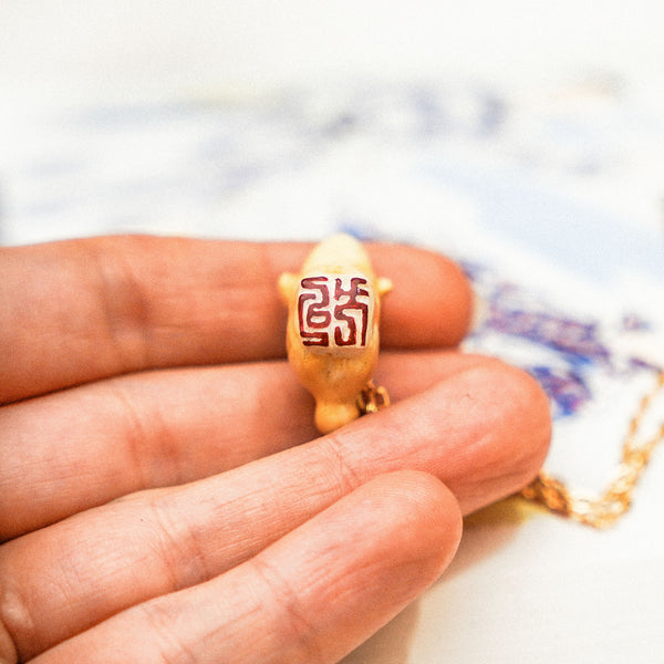 Dog - Lunar Year is a unique handmade polymer clay pendant.