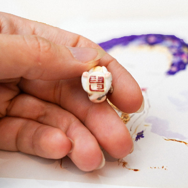 Rat - Lunar Year is a unique handmade polymer clay pendant.