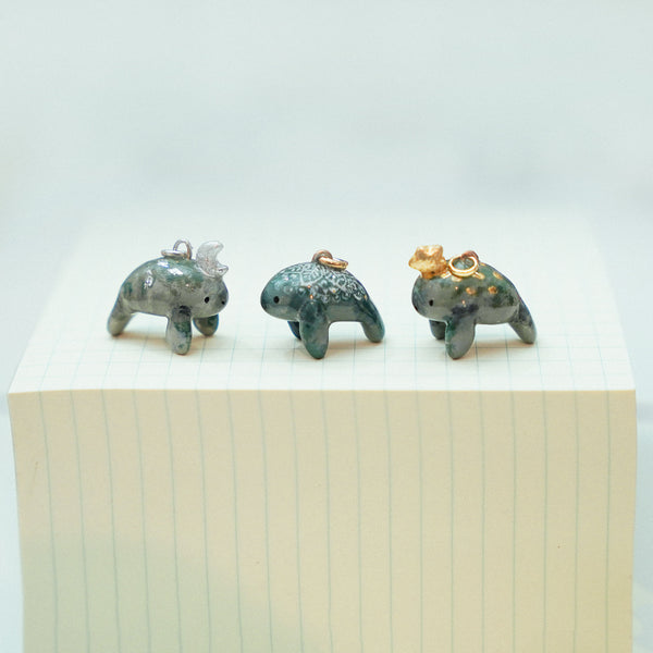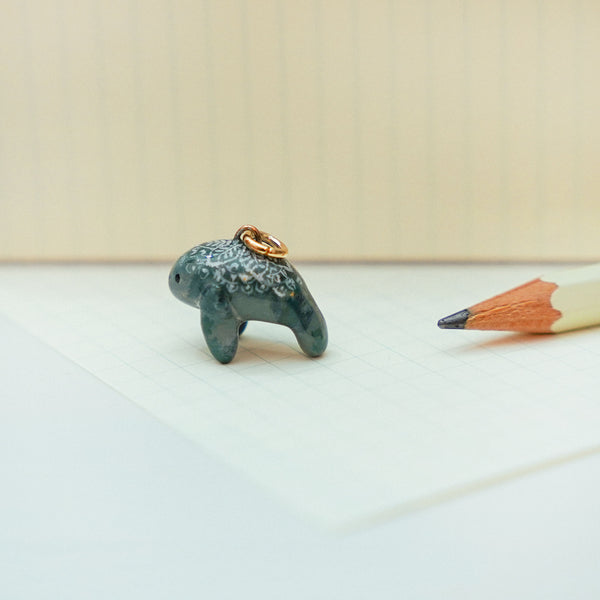 Manatee with a lace is a unique handmade polymer clay pendant.