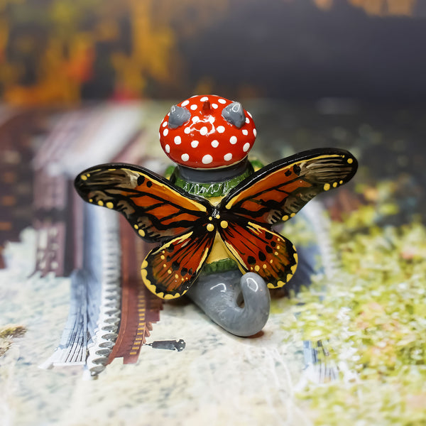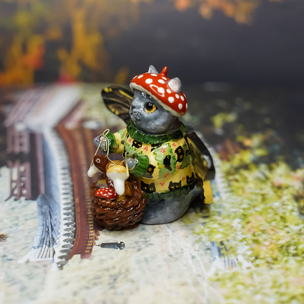 Mushroom picker British cat with butterfly wings and toadstool hat figurine. Animal totem is a unique handmade polymer clay sculpture. This miniature is exceptionally carefully hand painted with maximum detail and finished with glossy protective varnish. You can put it on your desk or give it to your friend as a birthday present ♥