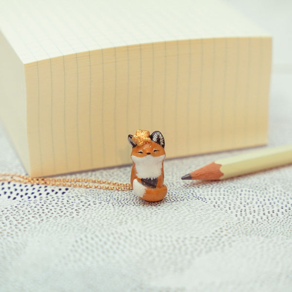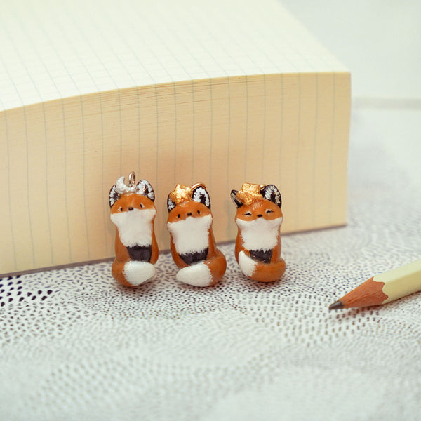 Nodding off fox with a star is a unique handmade polymer clay pendant.
