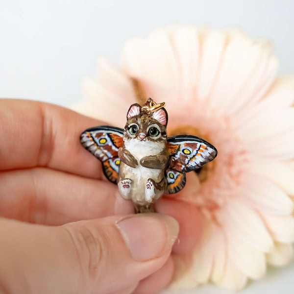Norwegian forest cat with butterfly wings pendant is a unique handmade polymer clay pendant. This miniature is exceptionally carefully hand painted with maximum detail and finished with glossy protective varnish. You can always have it with you or give it to someone you love
