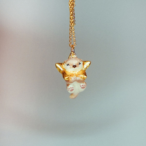 Otter with a star is a unique handmade polymer clay pendant.