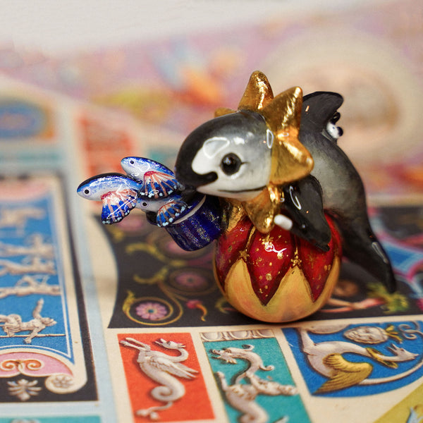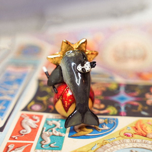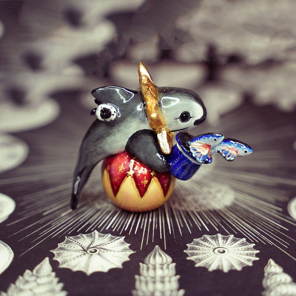 Porpoise is so talented! Balancing on a ball and magic tricks! He lost his bunny... Imean sea bunny but he conjured pigeons... I mean flying fish out of a hat!
