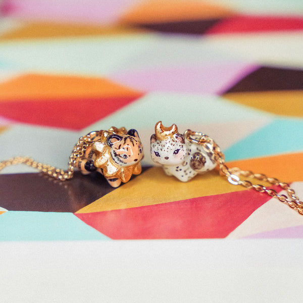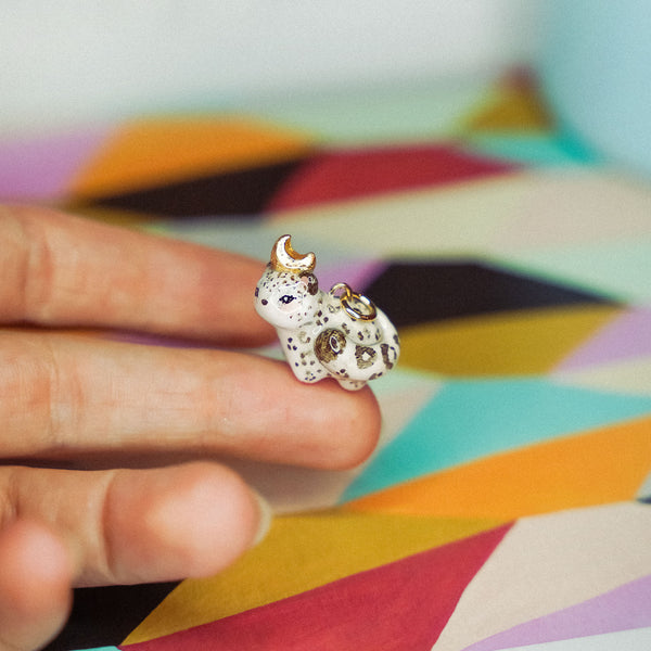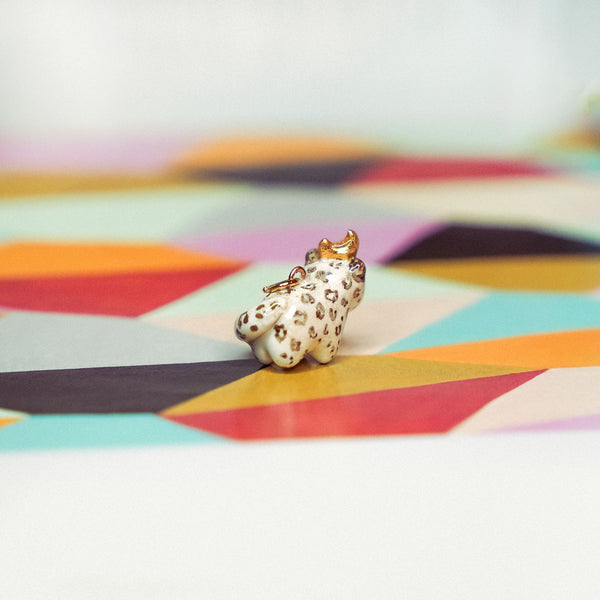 Snow Leopard with the Moon is a unique handmade polymer clay pendant.