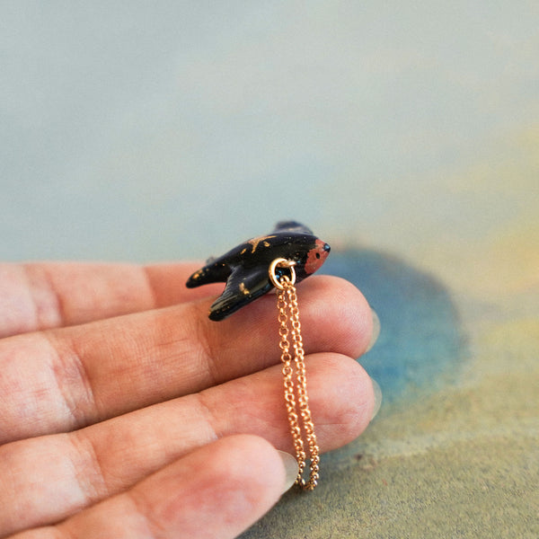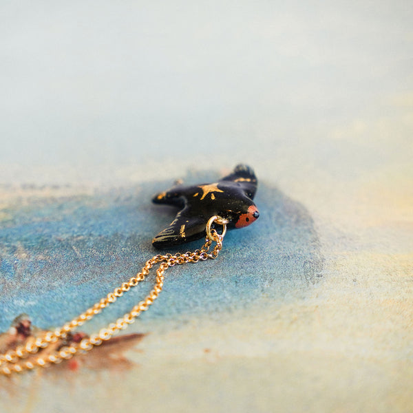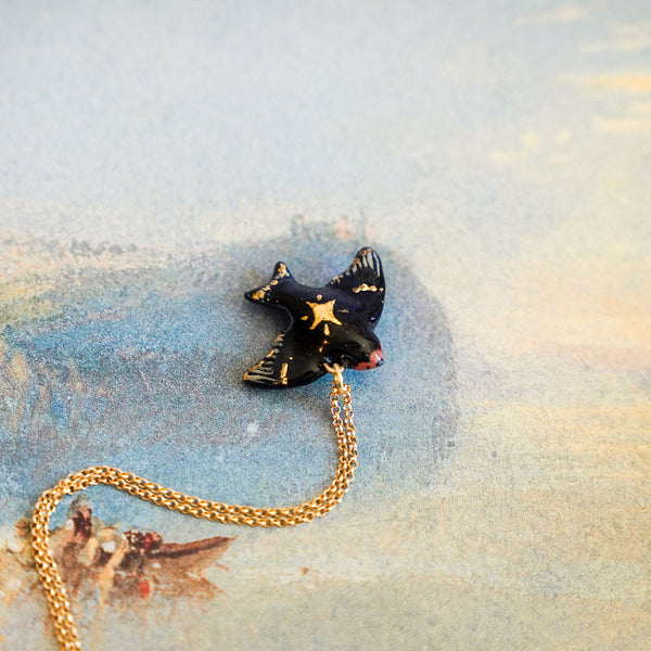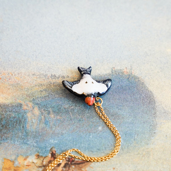 Swallow with a star is a unique handmade polymer clay pendant.
