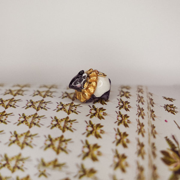 Tapir with the Sun is a unique handmade polymer clay pendant.