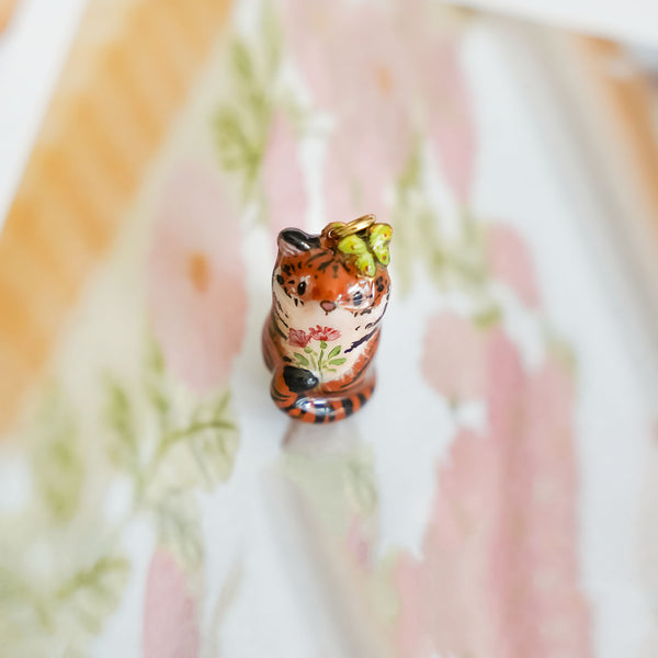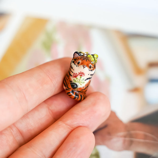 Tiger in the meadow is a unique handmade polymer clay pendant.