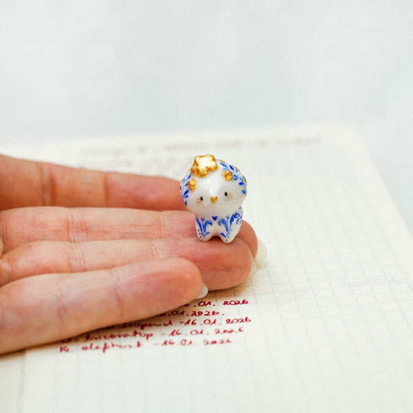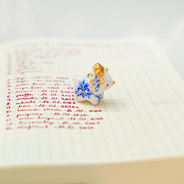 Triceratops with a star and porcelain pattern is a unique handmade polymer clay pendant.