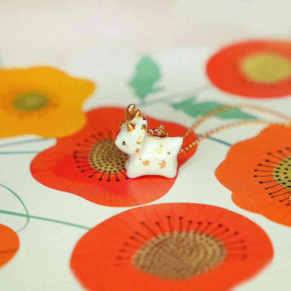 Triceratops with the Moon is a unique handmade polymer clay pendant.